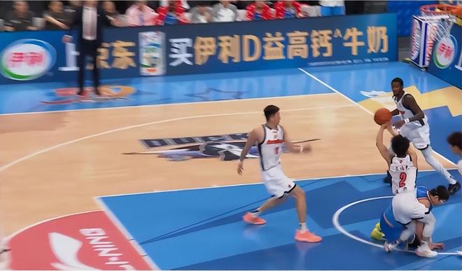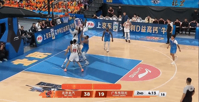 比赛第二节还剩4分07秒,场上发生意外,萨林杰前场上篮打中,北京快发底线球反击,周琦在反击过程中接应杰曼长传准备下快攻,但过程中不慎被萨姆纳绊倒,周琦失去重心摔倒,不幸撞伤了徐杰。