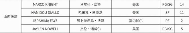 CBA官方:山西注册37岁后卫马尔科奈特,取消注册黑根斯