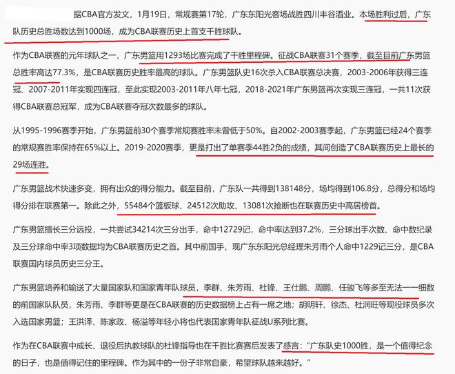 随着广东队拿到第1000场胜利,成为CBA又一个第一,CBA公司也是正式发文祝贺广东队!达到队史1000胜的成就!