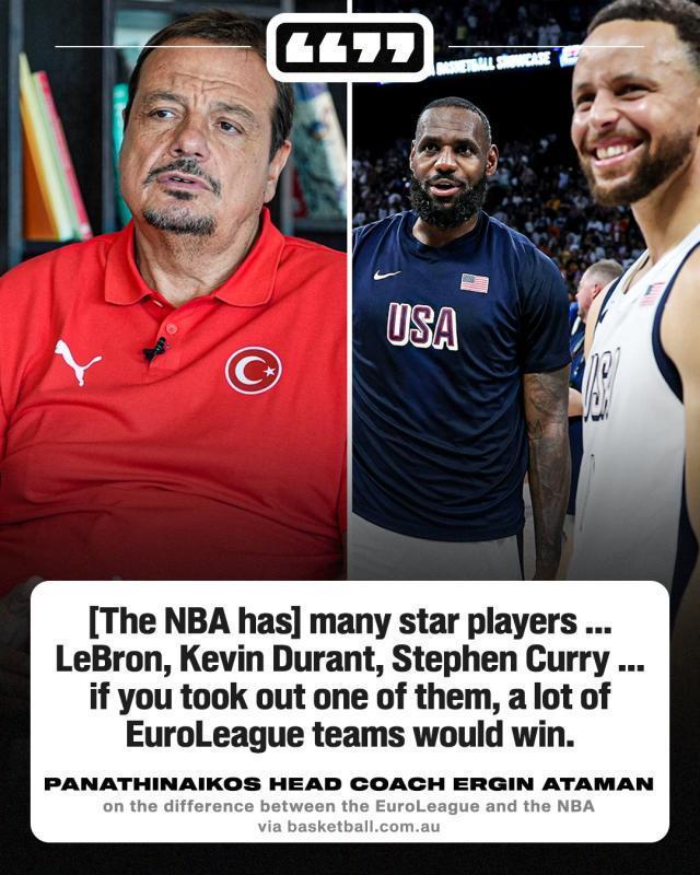 阿塔曼还努力为自己的观点寻找论据,比如他提到:“我相信2、3年前,欧洲球队和NBA队伍打了不少季前赛,如果我没记错的话,70%或80%的比赛都是欧洲球队赢了,NBA队伍和欧洲队伍之间的差距没有那么大。”