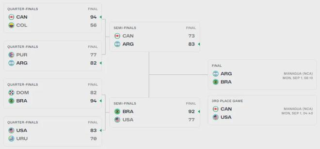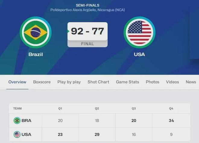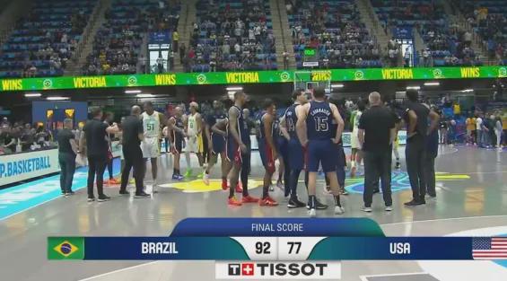 美洲杯半决赛,美国男篮77-92巴西,从而无缘决赛。