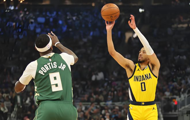 时间回到他的NBA新秀赛季,职业生涯的第15场,此前还连续四场遭遇DNP。当场比赛步行者处在魔鬼客场七连战的疲劳期,轮换人手捉襟见肘,但这位年轻后卫在湖人主场投进四记三分,最后时刻更是接到哈利伯顿助攻之后,面对詹姆斯投中45度角绝杀球。