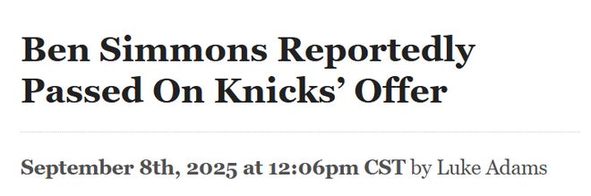 北京时间9月9日,据名记Stein透露,纽约尼克斯队在今年休赛期的某个阶段,曾向自由球员后卫本-西蒙斯提供一份一年期合同,但这位球员拒绝了这一提议。