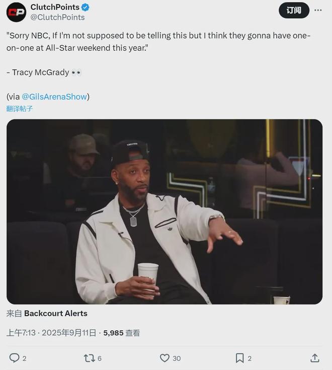北京时间9月11日上午,前NBA球星、现NBC解说员麦迪,在阿里纳斯的播客节目中说道:“我跟NBC体育聊过这些,不好意思了NBC,我不知道应不应该说出来,他们会在全明星周末举办1V1比赛。”万众期待的球星单挑,终于来了!