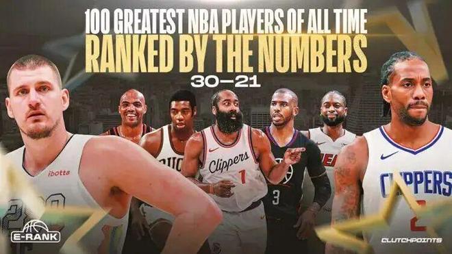 美媒Clutch Points 利用其旗下记者Josh Eberley创造的"E-Rank"的计算公式,评选了NBA历史球星Top100。