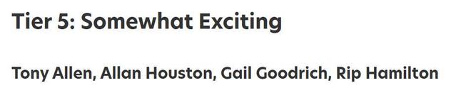第五档(4人):托尼阿伦、古德里奇、汉密尔顿和阿兰休斯顿