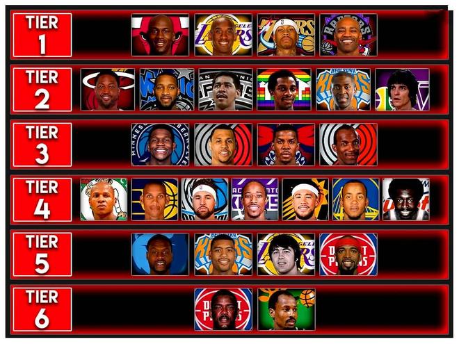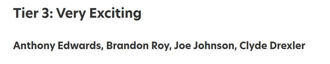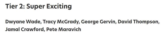 第二档(6人):韦德、麦迪、乔治格文、大卫汤普森、克劳福德和马拉维奇