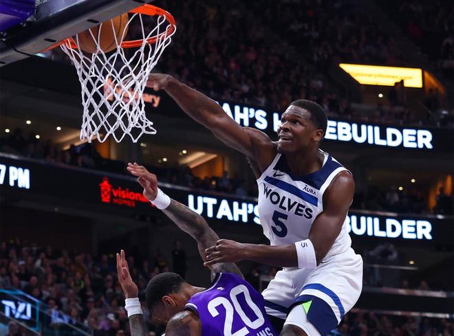 以爱德华兹为例,他是现役身体天赋最劲爆的得分手后卫,时常能够在比赛中完成匪夷所思的灌篮与隔扣,