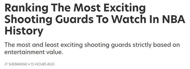 乔科艾卡四大巨星共享第一档!在距离NBA正赛仅剩一个月之际,美媒《fadeawayworld》公布出NBA历史分卫观赏性榜单,其中火箭名宿麦迪屈居二档。