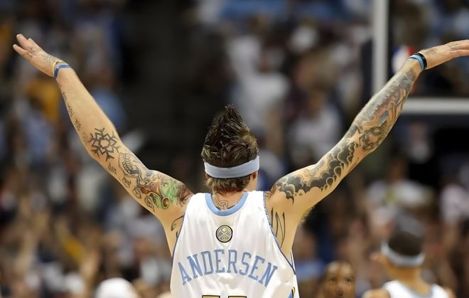 2008-09赛季,安德森场均出场仅20.6分钟,却能够送出2.5个盖帽。如果换算成36分钟,他的盖帽数据甚至超过当年的盖帽王霍华德。凭借着弹跳和激情,这位曾经的联盟弃子迅速成为了掘金最受球迷喜爱的大家伙。