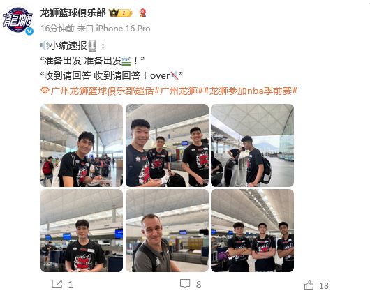雷速体育9月30日讯 根据广州龙狮官方社媒发文:全队“准备出发 准备出发”的动态。