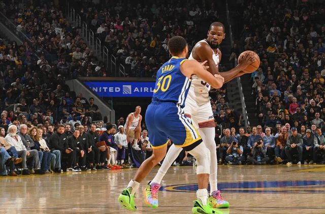 杜兰特的单打优势,在于他“独一无二”的身体条件与技术结合——2.08米的身高,却拥有比控球后卫更细腻的运球技巧,加上顶尖的弹跳与投篮手感,让他成为了“错位单打”的王者。无论是面对小个子球员,还是高大内线,他都能轻松找到出手空间:面对小个子,他能用身高优势完成干拔跳投;面对高大内线,他能通过运球节奏变化完成突破,或用后撤步三分终结。
