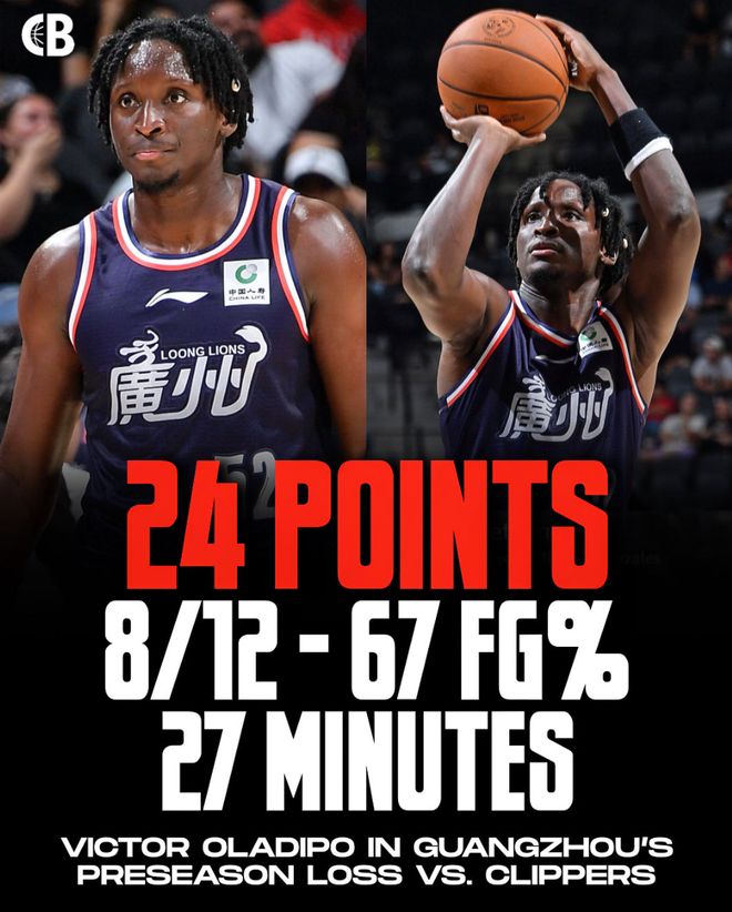在快船的官方比分海报中出现了两位球员,一个是快船核心科怀-伦纳德,一个是广州核心维克托-奥拉迪波,这两人这场比赛都有不俗的表现,33岁的奥迪似乎老夫聊发少年狂。
