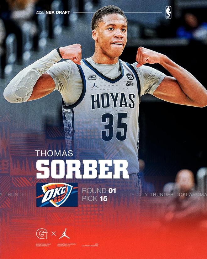 2025年选秀,索伯在第15顺位被选中,上个月在训练时撕裂了前十字韧带。这将是雷霆连续第二年有首轮选秀球员因前十字韧带撕裂缺席新秀赛季,尼古拉·托皮奇在2024/25赛季也遭遇了类似的伤病。