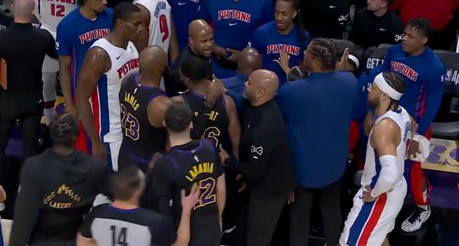 斯玛特与邓罗对抗倒地,起来后与活塞替补席喷垃圾话,直接吃到了技术犯规,卡宁安技术罚球命中活塞继续进攻,汤普森内线单打艾顿没有,拉拉维亚三分没有坎宁安拿到球就一条龙上篮,东契奇回应2+1,坎宁安又杀入内线上篮湖人这护框太差了,东契奇超远三分19-19打平。汤普森挡开顺下吃饼上篮东契奇还想投三分直接三不沾,斯图尔特到内线扣了一个,湖人这转换防得太差了。斯玛特造成邓罗打手两罚全中21-23,汤普森面对斯玛特干拔跳投不中,回过头来海斯又是罚球打成23平,打强队真是全靠罚球续命!比赛进入首节最后4分钟,坎宁安、斯图尔特连得4分,东契奇突破上篮25-27湖人落后2分,比赛进入暂停!重新比赛詹姆斯单独带队,活塞防守突然让强度,连续高强度逼抢打出防守反击,詹姆斯两罚一中,萨瑟三分帮助活塞首节36-30领先6分!