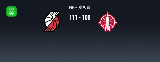第四节开拓者阿夫迪亚拿下7分,火箭杜兰特拿下7分,最终开拓者111-105战胜火箭