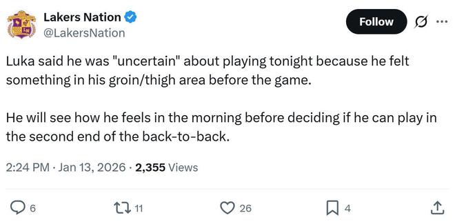 值得一提的是,赛后被问到赛前出战状态为何是不确定时,东契奇表示那是因为在比赛开始前,自己感到腹股沟和大腿区域有不适。