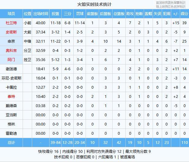 下半场,双方连续走上罚球线展开胶着拉锯战,兰德尔找到手感两分球弹无虚发单节砍下17分,但火箭连续杀伤还能咬到差1分,末节火箭上来12-3攻击波拉开比分,随后火箭牢牢保持住两球以上领先,杜兰特接连罚球杀死比赛,最终火箭110-105力克森林狼。