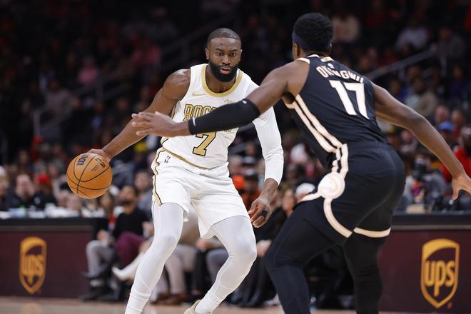 开季至今,杰伦布朗场均轰下联盟第五的29.7分,外加6.4板4.8助1抢断,数次在比赛中交出30+、40+,乃至50+得分表现拖着球队前进。