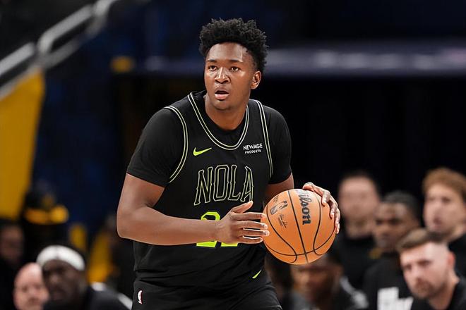 本场比赛中,鹈鹕的先发内线新秀德里克-奎因(Derik Queen)的表现依然是无法令人感到满意的。奎因全场出场23分05秒,投篮2中2,罚球2中1,得到了5分4篮板8助攻1抢断1盖帽的数据,还有4次失误和2次犯规,正负值为-8。奎因在进攻端很难在对手内线完成得分,他的得分能力远不如大家想象中那么出色。奎因在传球和组织方面确实是能够起到一定的作用的,但是他也出现了大量的失误,他的基本功其实并不理想,他的控运球能力也非常一般,他在进攻端的作用其实并没有那么高。不仅如此,奎因在防守端的表现更是灾难级别的,他的个人防守能力一塌糊涂,他简直是被活塞中锋杰伦-杜伦(Jalen Duren)各种打爆。攻防两端的表现都是一塌糊涂的水平,奎因的表现显然是差了一些的。