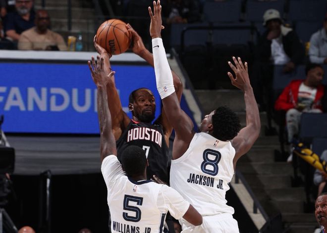 巧了,除了助攻之外,其他完美匹配火箭输球线!站在主帅乌度卡角度,让年满37岁的杜兰特,场均出战39分钟,这是极其失败的执教体现。篮网时期纳什就曾这么用杜兰特,结果杜兰特只坚持1个月就遭遇脚踝伤势,休战2个月。上赛季在太阳也是如此,杜兰特的身体状态,铁定无法支撑他打这么久,即便火箭有更好的资源,能分担杜兰特在防守端的压力。但是,杜兰特进攻怎么办?就以进入1月份为例,打篮网6次失误,打森林狼5次失误,打76人8次失误,打马刺4次失误。自始至终,杜兰特破包夹能力就很差。