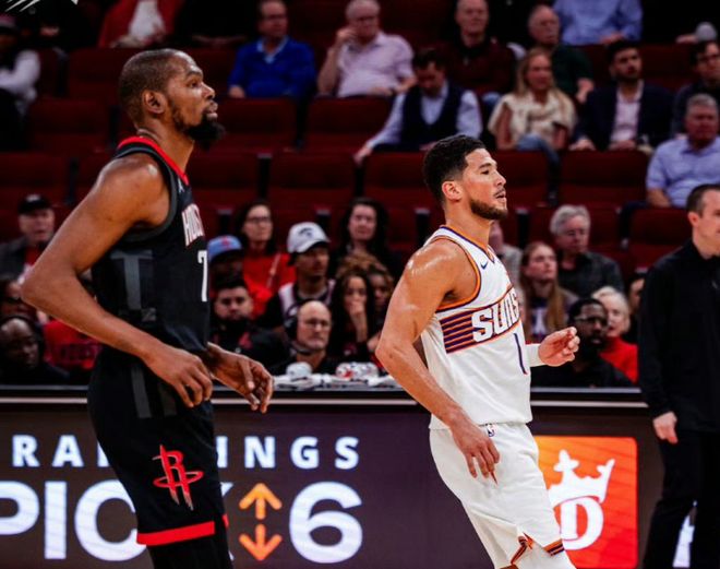乌度卡就像是满足管理层要求一样,谢泼德在场时,大部分还要摆上申京+阿门!那杜兰特可就麻烦了。一个小贾,把杜兰特气得在替补席摔水瓶发泄,高光一场要萎靡好几场,防守也被经常点名,进攻BPM值-0.9;防守BPM值-0.4,总BPM值队内第10!阿门被安排打1号位,效率下降很多,BPM值也从上赛季4.1降到本赛季1.9。申京不用多说,他的打法就和杜兰特完全不适合,需要球权,但又没有投射能力,给队友的挡拆,就像是祖巴茨一样,带着防守人就过来夹击,杜兰特有些时候不传球都不行。