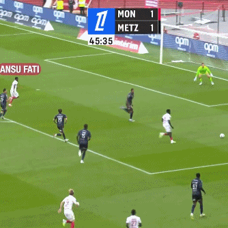 安苏-法蒂刚刚替补出场,就为摩纳哥打进领先的进球: