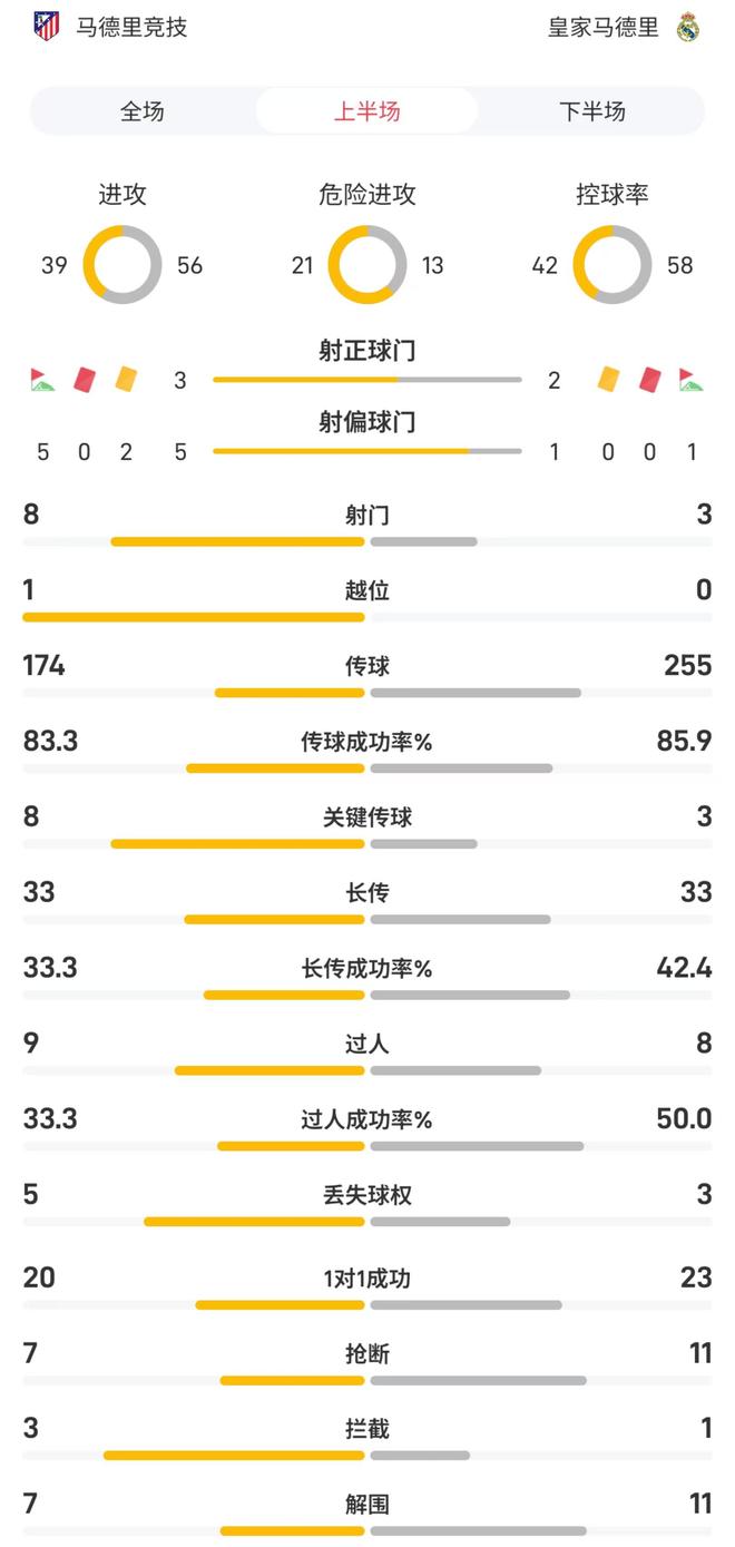 雷速体育9月27日宣 西甲第7轮焦点大战,马竞坐镇主场迎战皇马。半场结束,马竞与皇马暂时2-2打成平手。