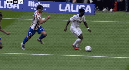 第39分钟,维尼修斯一个急停晃开两人防守后送出助攻,居莱尔无人盯防,传射建功。