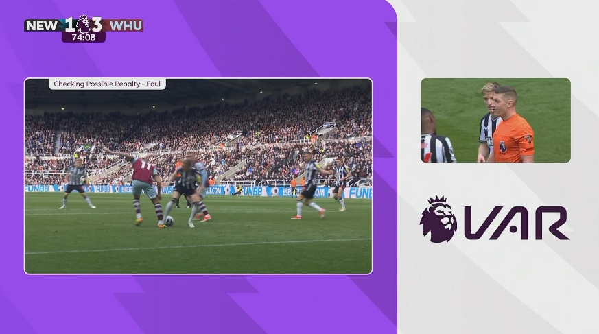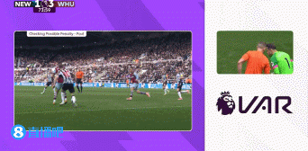 3月30日讯 英超第30轮,纽卡vs西汉姆联。下半场第74分钟,纽卡获得点球!戈登禁区被菲利普斯放倒,裁判经过var提示后判罚点球,随后伊萨克主罚点球破门将比分扳成2-3。