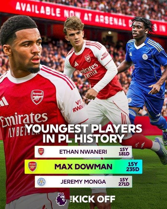 第64分钟,阿森纳15岁天才少年道曼替补登场上演英超首秀。英超官方显示,道曼以15岁235天的年龄成为英超历史第二年轻球员!
