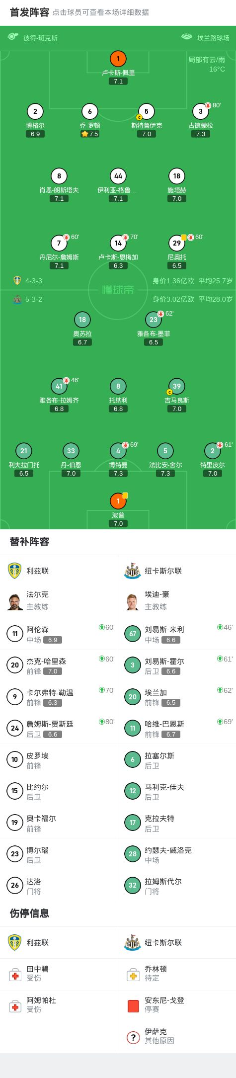 英超联赛第3轮,利兹联坐镇主场迎战纽卡斯尔联。全场比赛双方均未能攻破对方球门,最终以0-0的比分握手言和。