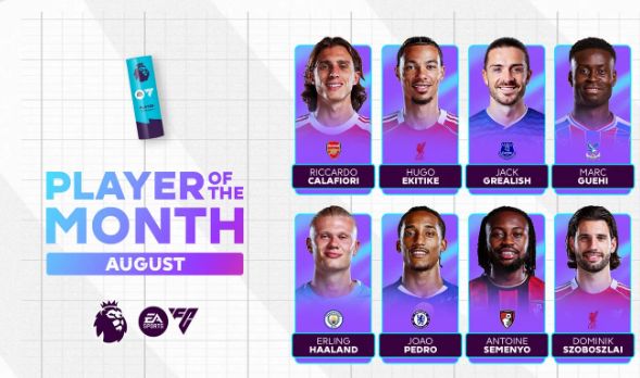 雷速体育9月4日宣 英超官方公布了8月份的最佳球员候选,共有8名球员入围,其中利物浦2名球员入选。
