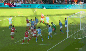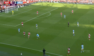 第9分钟,曼城后场得球快速策动进攻,哈兰德分球,赖因德斯持球一路推进,随后又斜传给快速前插的哈兰德,后者禁区内几乎单刀球机会,一脚低射洞穿拉亚十指关,曼城1-0阿森纳。↓