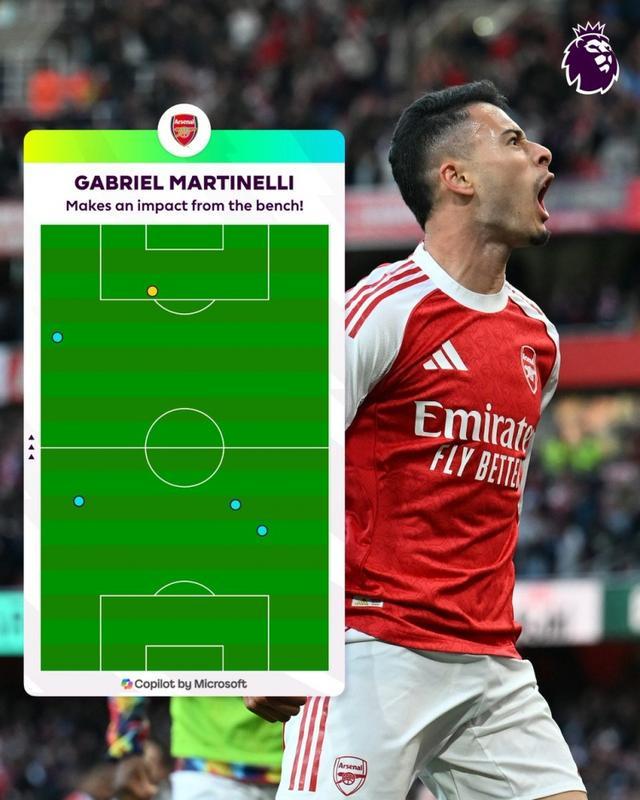 直播吧9月22日宣 英超官方发布数据,马丁内利替补登场后仅触球5次,便为阿森纳1-1逼平曼城。