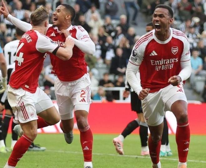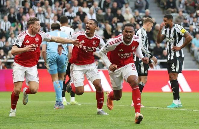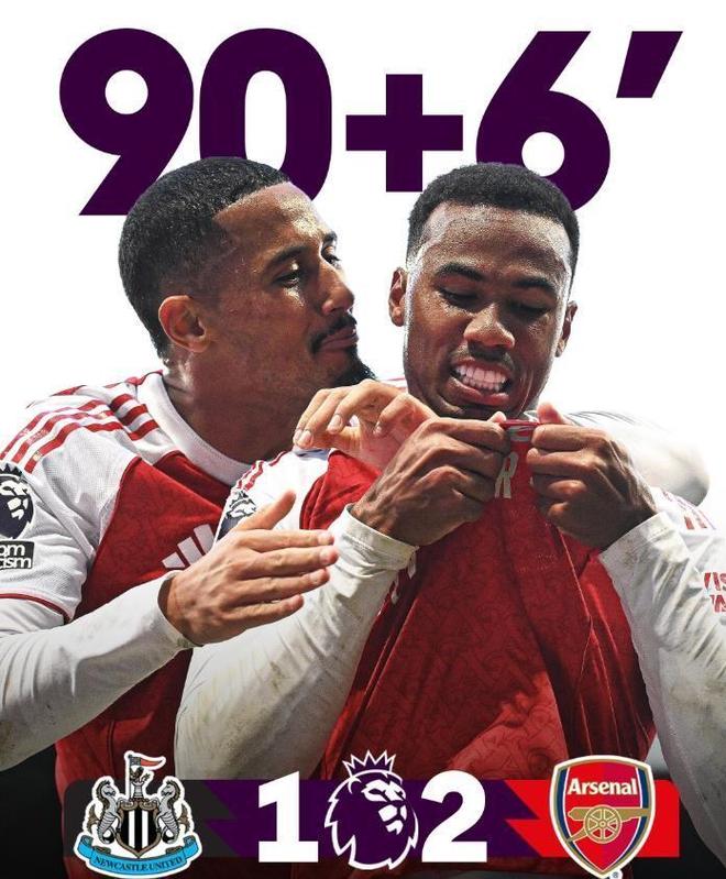 比赛第96分钟,当加布里埃尔在人群中高高跃起,一记头球攻门,皮球应声入网。在伤停补时最后时刻,当圣詹姆斯公园球场的记分牌上显示着阿森纳2比1领先的画面,阿尔特塔从教练席一跃而起疯狂庆祝,枪手球迷陷入彻底的疯狂。
