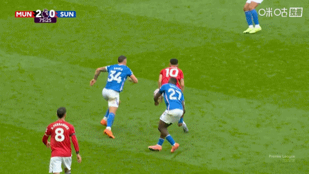 第8分钟,姆伯莫助攻,芒特凌空打门直入死角,曼联1-0领先桑德兰!