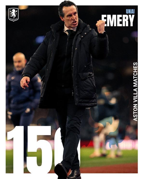 维拉官方社媒也发布了埃梅里150场里程碑海报。