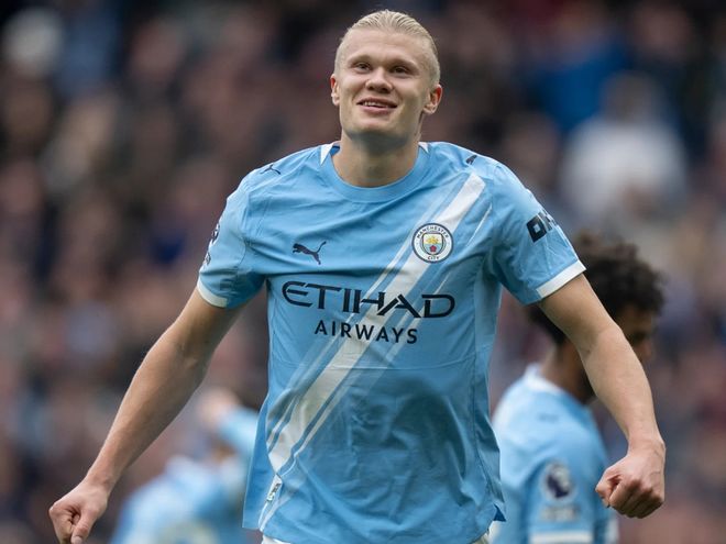 新赛季至今,曼城的战绩不尽如人意。在首轮客场4球大胜狼队之后,瓜迪奥拉的球队先后输给了热刺和布莱顿遭遇2连败。而13名球员伤停,更是让他们在即将到来的9月魔鬼赛程中面临着5连败的风险。然而,哈兰德的挺身而出,让曼城球迷看到了救世主的模样。第4轮曼市德比,他梅开二度率队3球大胜曼联,欧冠对阵老友德布劳内率领的那不勒斯,他在下半场首开纪录,击碎了客队死守1分的美梦。随后客场与阿森纳的强强对话,哈兰德开场9分钟的闪击让曼城先声夺人,如果不是马丁内利伤停补时第3分钟的绝平救主,曼城真的要从酋长球场带回不可思议的3分。