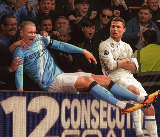 各项赛事连续12场破门,哈兰德势不可挡。哈兰德的偶像C罗,足球生涯最长的进球纪录也是12场,发生在2018年2月-4月。曼城客战维拉,如果哈兰德再度进球,13连斩的惊人纪录,比偶像C罗还疯狂。