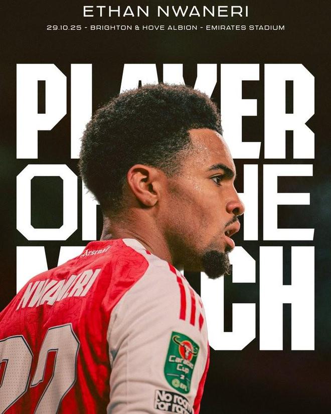 在今天凌晨进行的英联杯第四轮比赛中,阿森纳主场2-0击败布莱顿,赛后,恩瓦内里被评为阿森纳队内最佳球员。