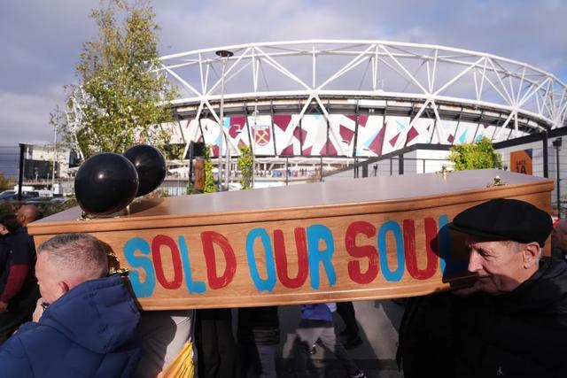 据《太阳报》报道,在西汉姆主场对阵伯恩利赛前,上千名西汉姆联球迷举行激烈抗议游行,前排球迷抬着棺材走向球场,这已经是西汉姆连续第三个主场比赛出现球迷抗议活动。