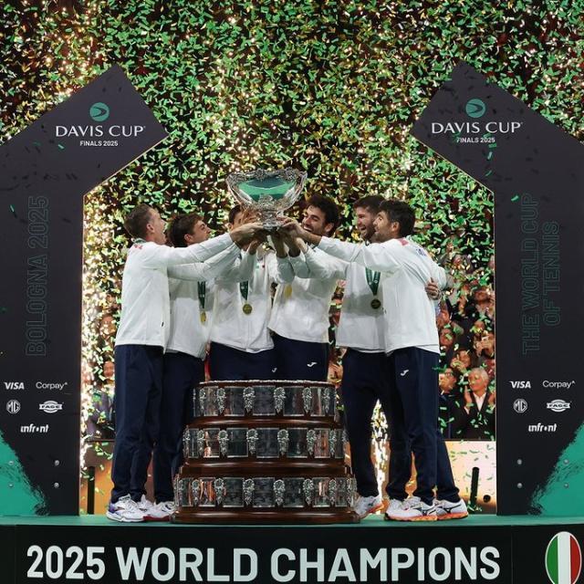 网球戴维斯杯决赛,贝雷蒂尼2比0战胜布斯塔,科博利2比1战胜穆纳尔,意大利队斩获冠军。意大利队成为1972年后首个达成三连冠的队伍,贝雷蒂尼个人杯赛单打10连胜。在辛纳、穆塞蒂两位世界前10选手缺阵的情况下,意大利队依旧完成了网球戴维斯杯三连冠的壮举。意大利作为卫冕冠军,先后2比0击败奥地利、比利时和西班牙夺冠,贝雷蒂尼和科博利为意大利出战击败了所有的对手,没有给双打选手出场的机会,以小场6比0全胜的战绩再次实现卫冕。