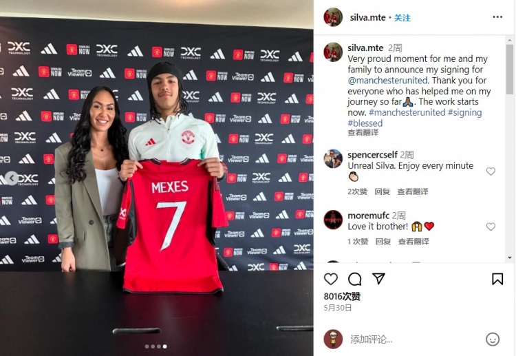 梅克斯在两周前才与曼联签约,当时他还在社交媒体上晒出自己的7号球衣。