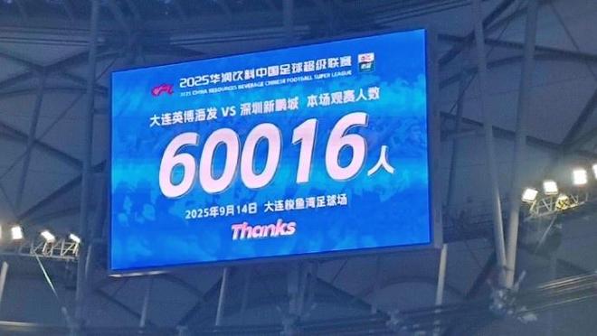 直播吧9月14日宣 据博主“从小就是大连球迷”消息,英博本轮主场现场观众为60016人。