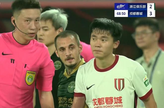 下半场,双方拼得很激烈,直到最后一分钟改写了比分。第100分钟,卡列洛禁区爆射破门,帮助浙江队3-3压哨绝平,成都蓉城到手3分变为1分。