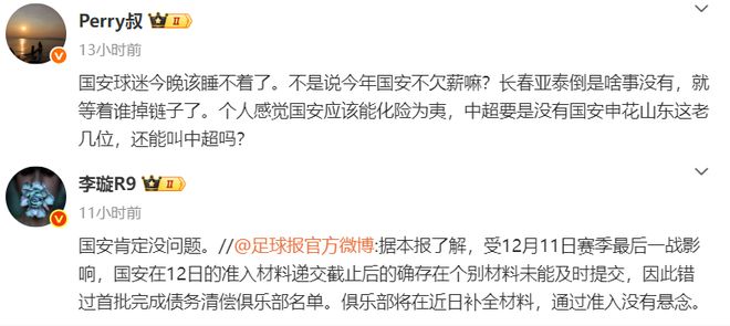 北京国安无缘第一批准入名单后,就在国安球迷心惊肉跳的时候,外界却纷纷打气。记者裴力表示连长春亚泰都没啥事,就看谁掉链子了,不过他认为国安应该能化险为夷,毕竟“中超要是没有国安申花山东这老几位,还能叫中超吗?”