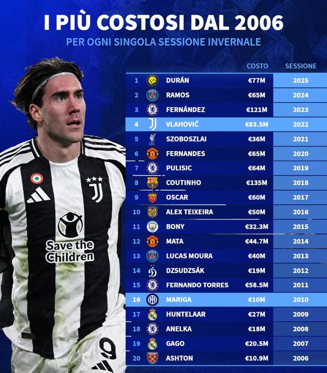 2022年 弗拉霍维奇 佛罗伦萨>尤文图斯 8350万欧元
